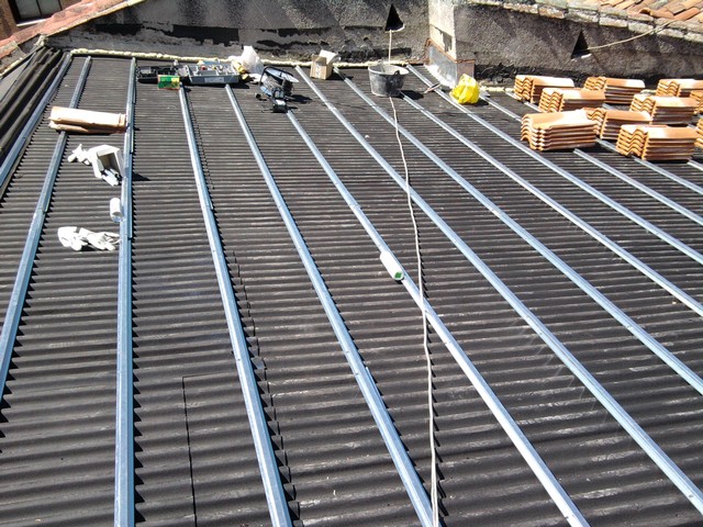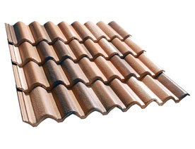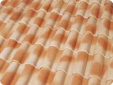 Las tejas curvas son elementos de perfil bastante plano presenta una o mas, generalmente dos acanaladuras, que facilitan la escorrentía. Esta inspirada para lugares donde las lluvias y las nieves son mas abundantes.